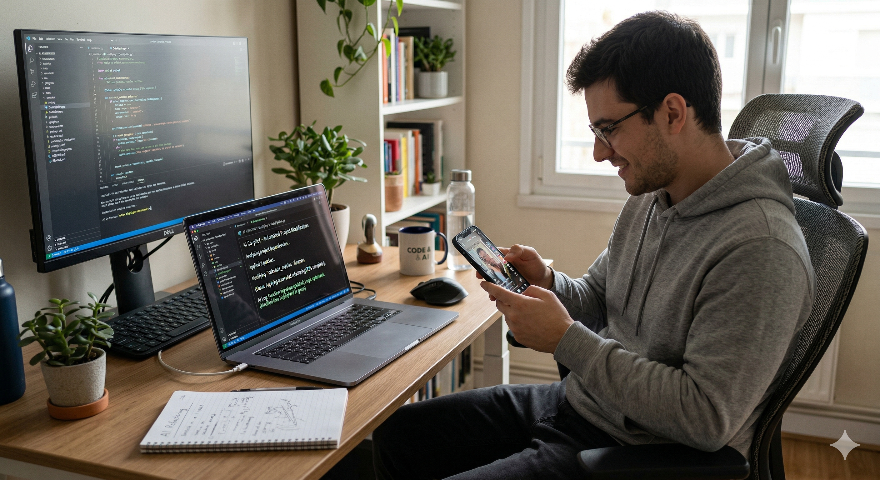 我发现在AI代替我工作时,产生了一个很致命的问题——我该做什么?我似乎只能坐在桌前,双手放空,等待着屏幕里的AI一点点吐出它的思考。太无聊了。我相信大部分人绝不会“浪费”这段等待的时间。我们会在敲下指令、按下回车的那一瞬间,下意识地用指纹解锁旁边的手机,继续滑向下一个短视频。这样的一天,如果问我工作做得怎么样,我会说“好像都做完了”;但如果问我今天过得怎么样,我只能说“好像根本没有生活过”。